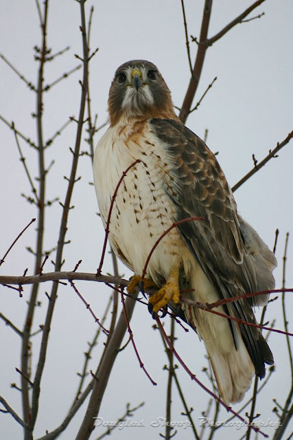 Here's looking at you kid. I caught this red tail hawk in a tree behind my parents house in Ohio. This guy was surveying the field for mice or whatever he likes. Enjoy.
